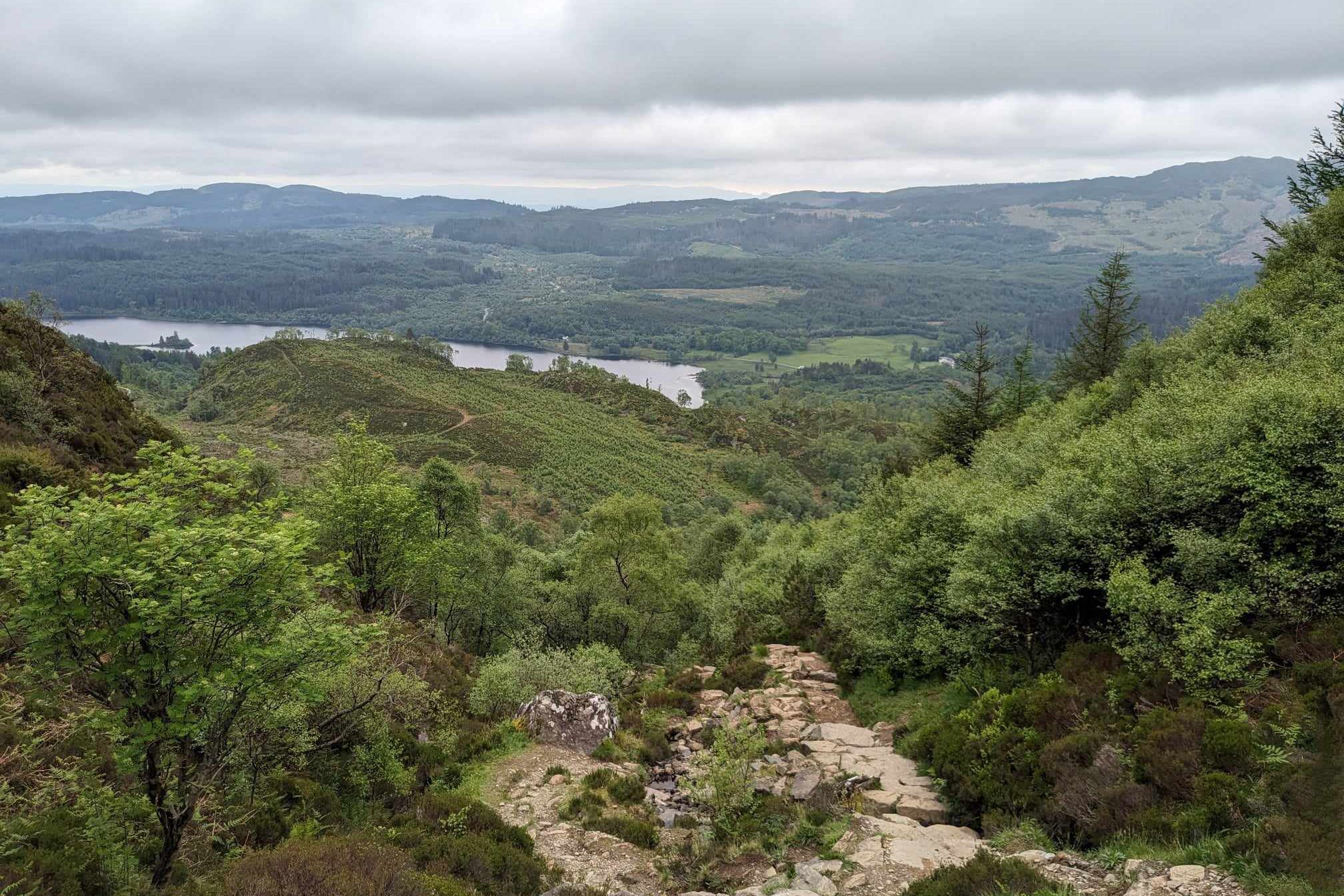 I had hoped, though, when I climbed Ben A’an, a steep fecker but enjoyable and beautiful nonetheless. This was one I had climbed about 6 years previously, and the difference was startling. All around Ben A’an 6 years ago was the remnants of a recent clear fell. All the trees in the area had been cut down, and all was open, littered with stumps and branches useless for timber. However, on my recent visit, birch, rowan, and oak saplings were springing up everywhere. Blueberries and ferns were also dotting hummocks and alongside streams. It was a marked and welcome difference in such a short time. 10 years from now, the whole hillside should be a thriving deciduous woodland.